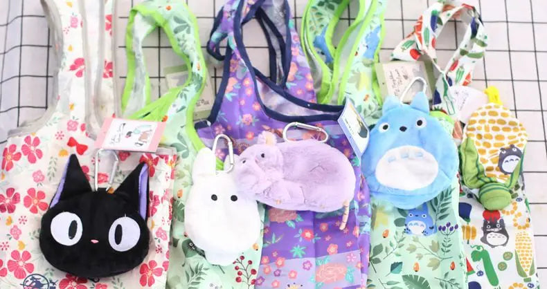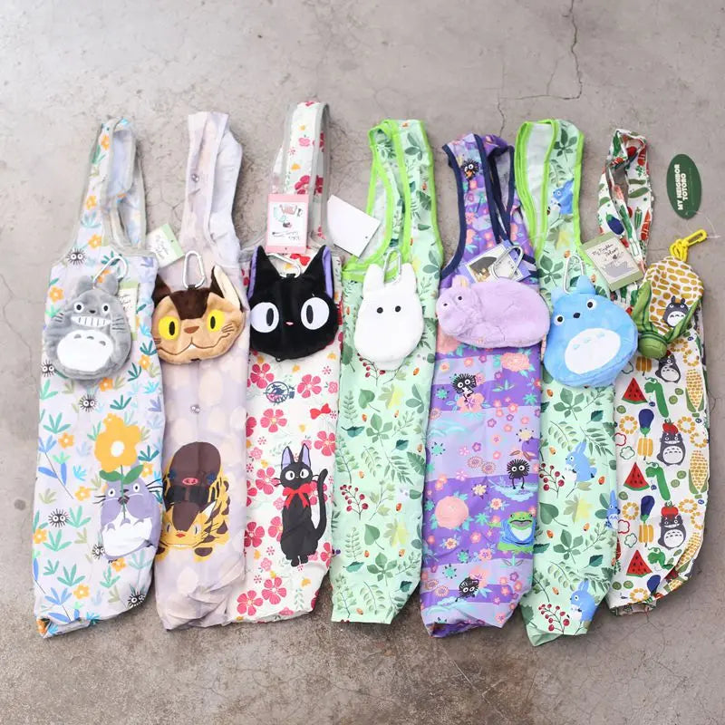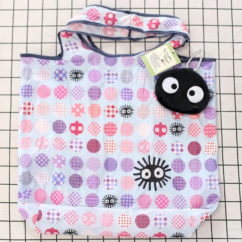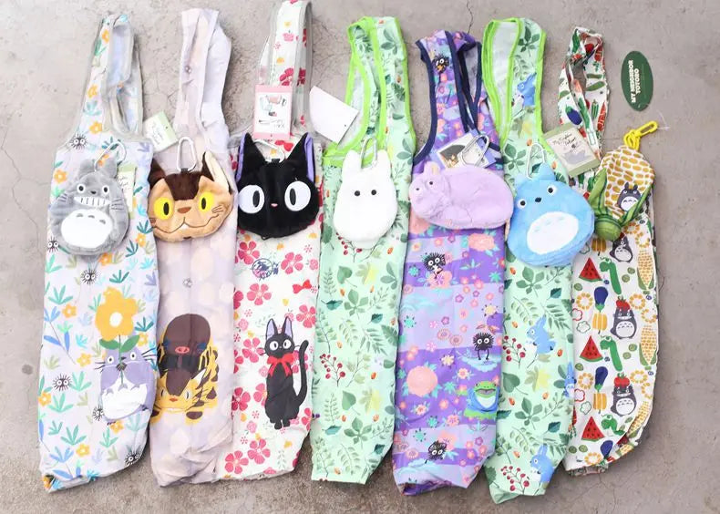 Anime Cartoon Foldable Shopping Bags Thick Nylon Large Tote Reusable Polyester Portable Shoulder Women's Handbags Folding Pouch
