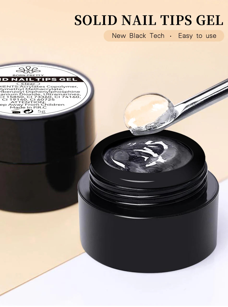 BORN PRETTY 5ml Solid Nail Tips Gel Nail Polish False Fake Nail Tips Transparent Clear Nail Patch Gel Modelling Easy Stick