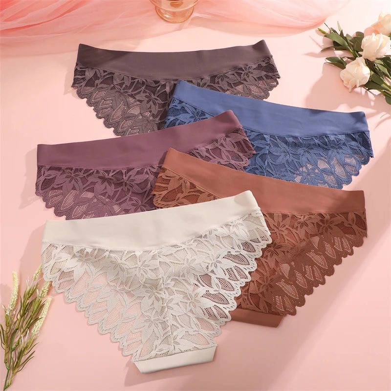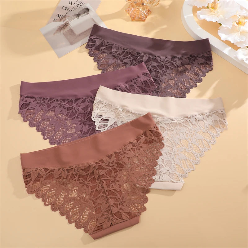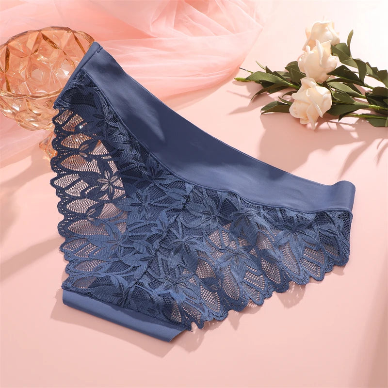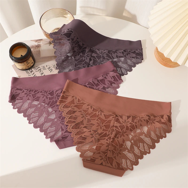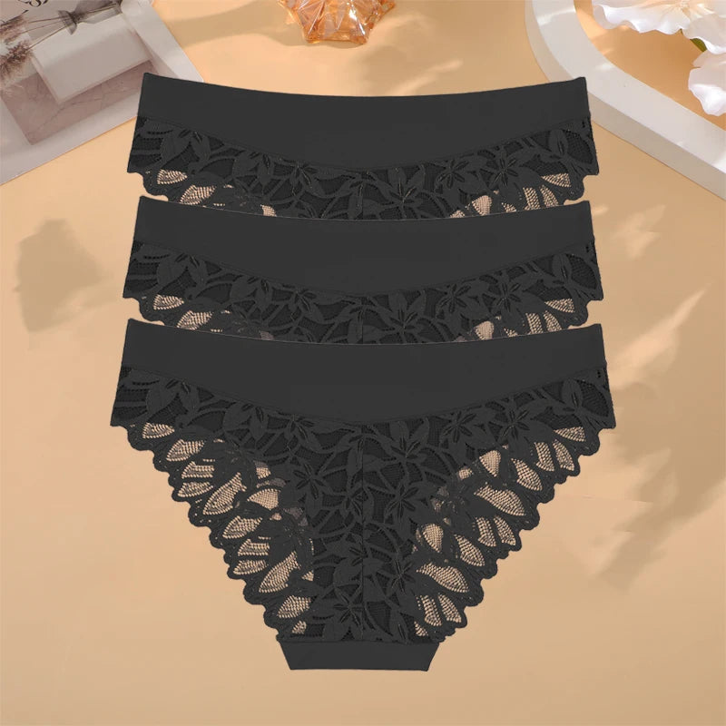 FINETOO 3Pcs Women Lace Floral Underwear Seamless Stretch Panties Sexy Hollow Out Low-Waist Briefs High Quality Comfort Lingerie