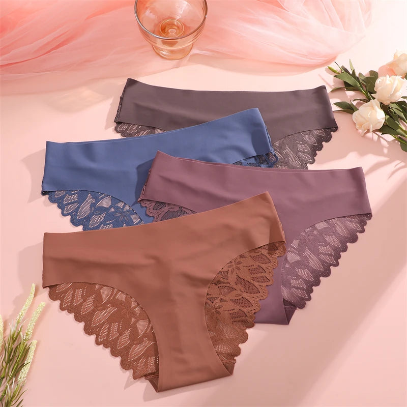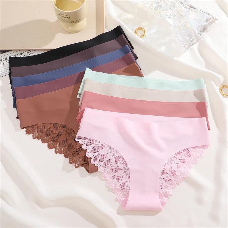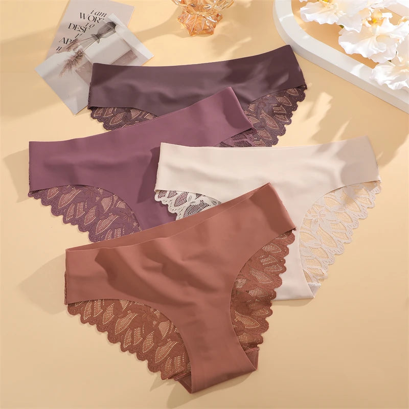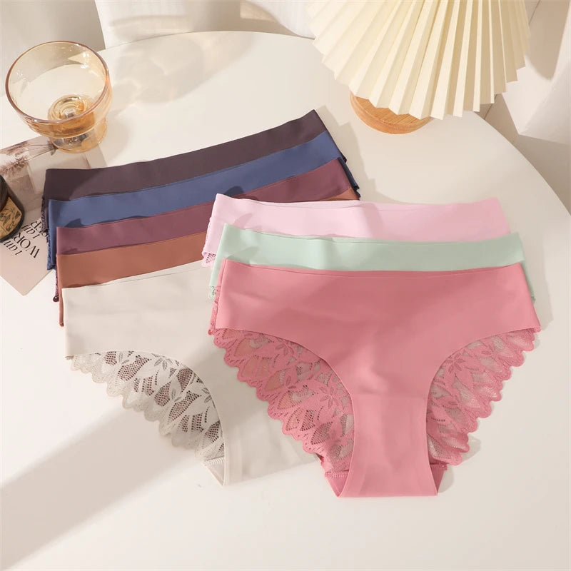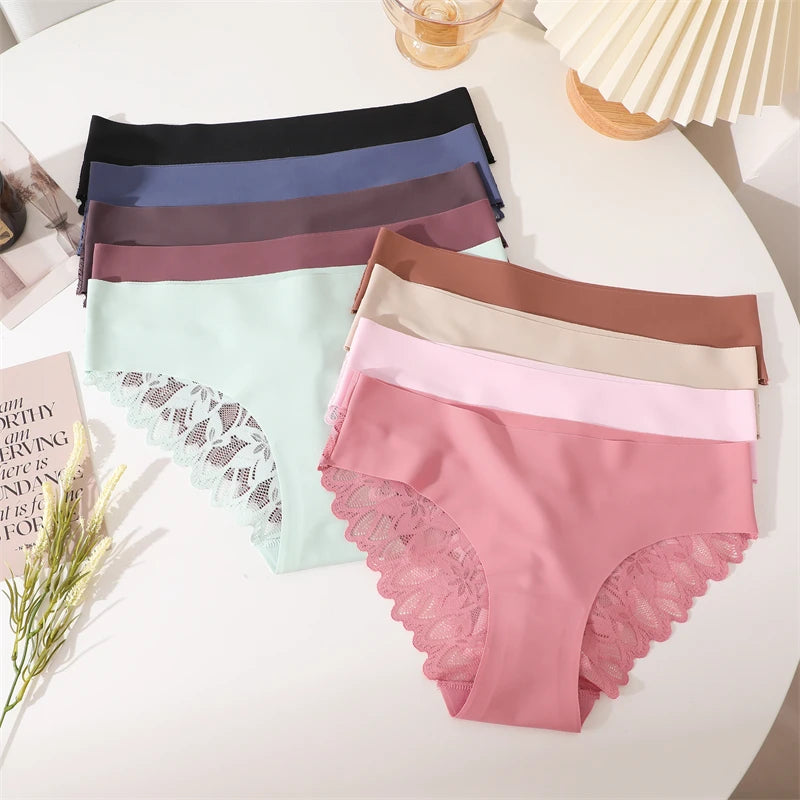 FINETOO 3Pcs Women Lace Floral Underwear Seamless Stretch Panties Sexy Hollow Out Low-Waist Briefs High Quality Comfort Lingerie