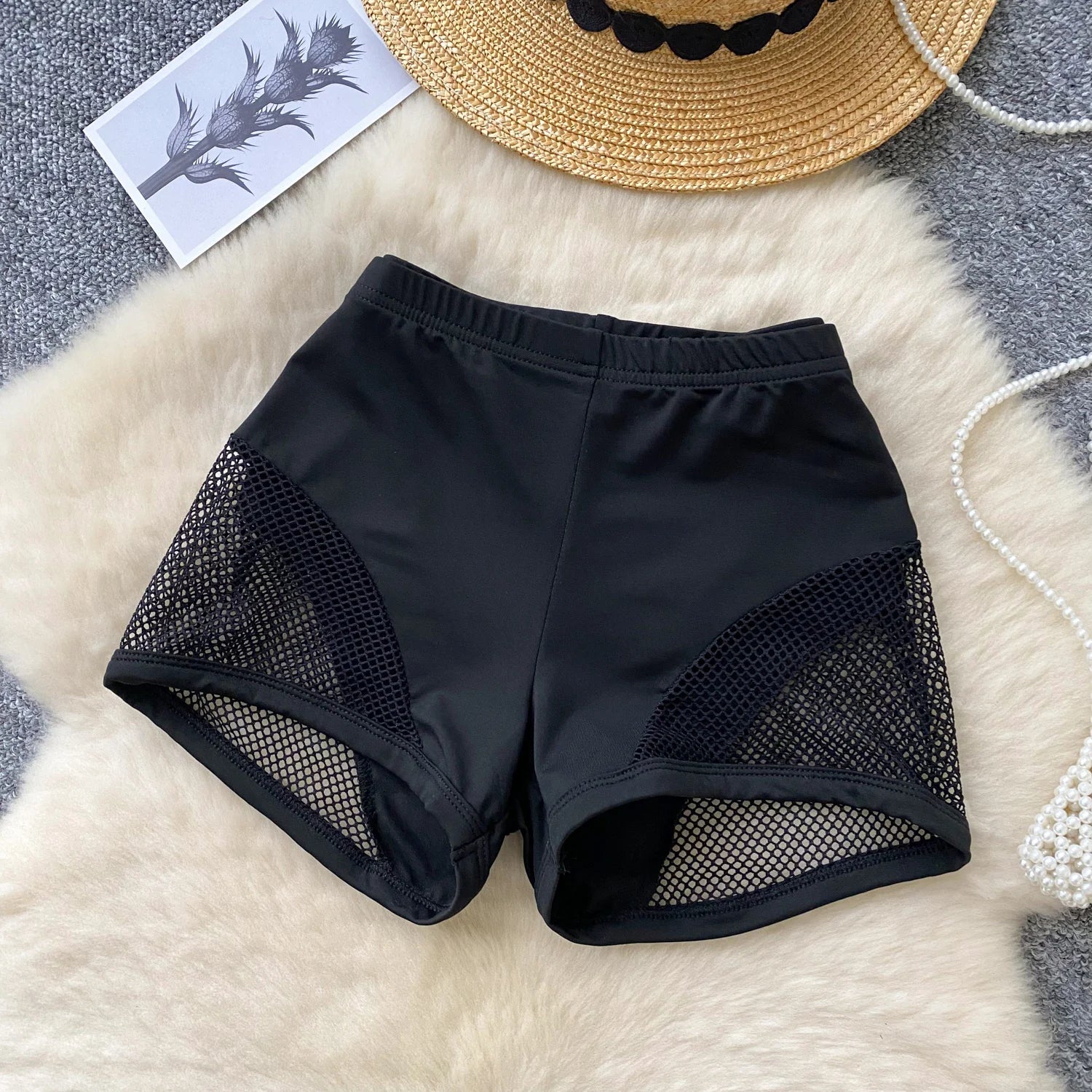 Foamlina Women's Casual Sweatpants Girl's Summer New Sexy Tight Hip Pants Pure Lust Black Grid Patchwork Y2K Street Shorts