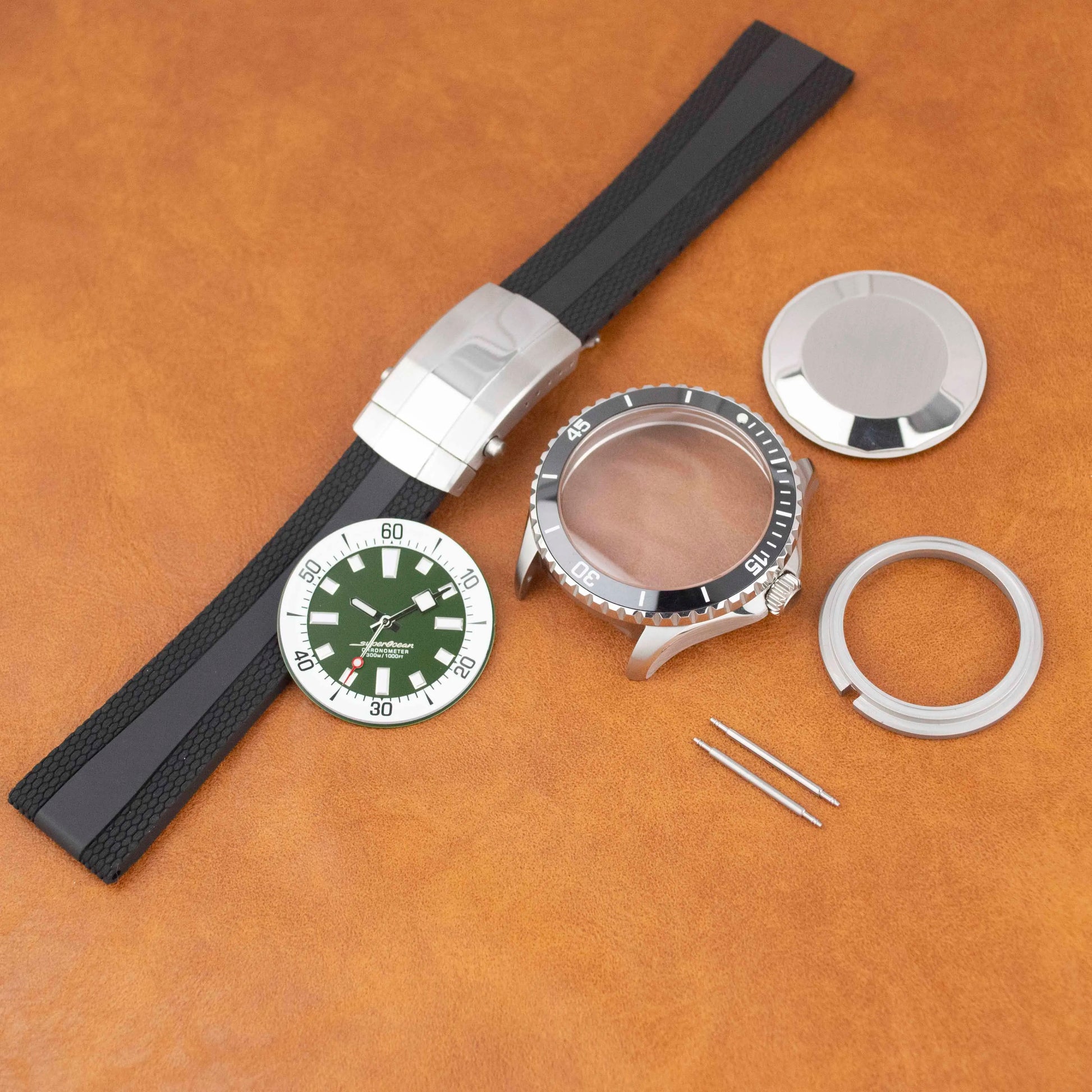 for SUPEROCEAN NH35 Case Rubber Strap Dial Hands 200m Dive Watch Men Stainless Steel Sapphire Crystal fit for NH35 NH36 Movement