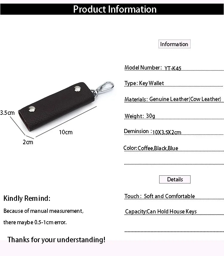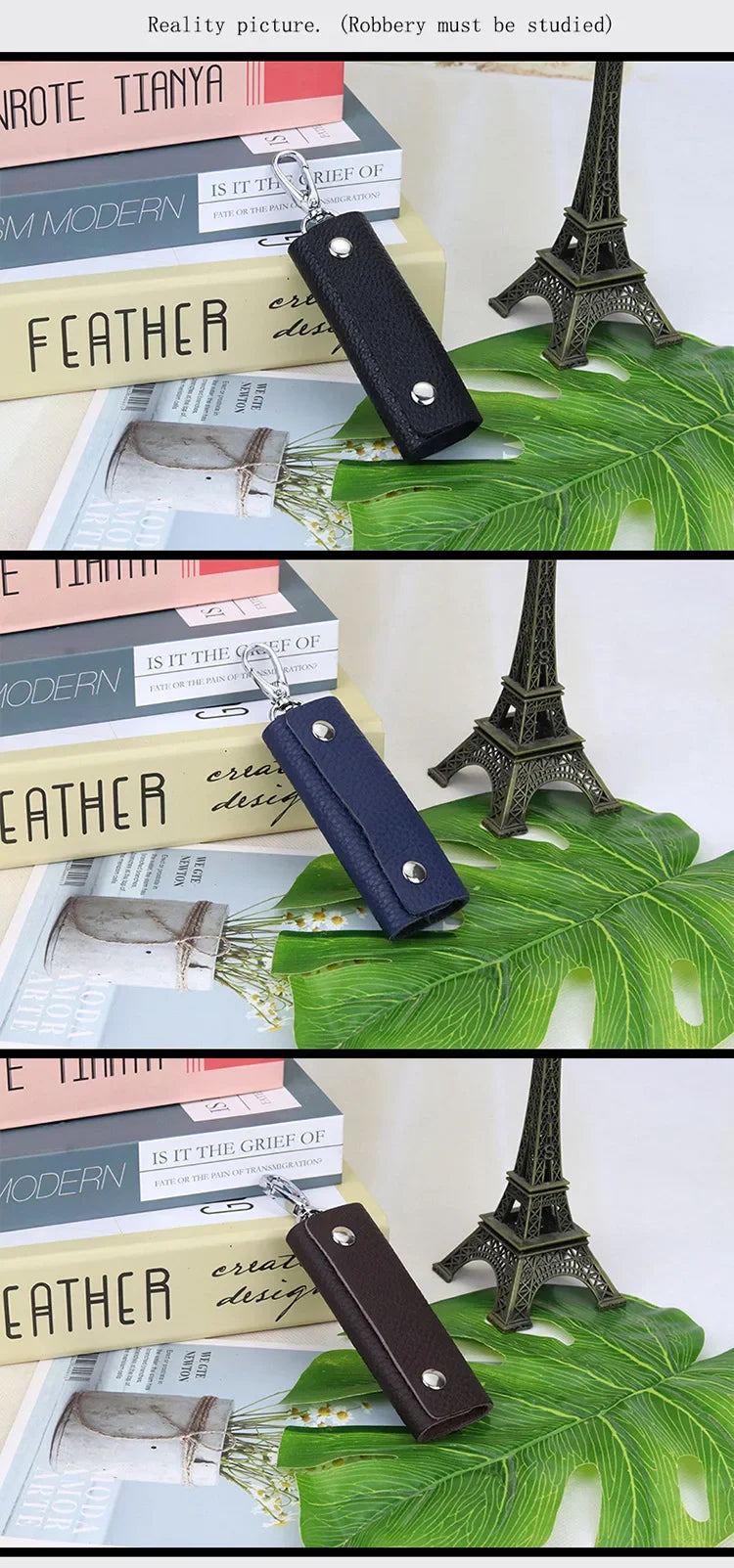 Genuine Leather Key Storage Bag Mini Universal Key Pack Housekeeper Metal Hook Key Holder Wallet for Men and Women
