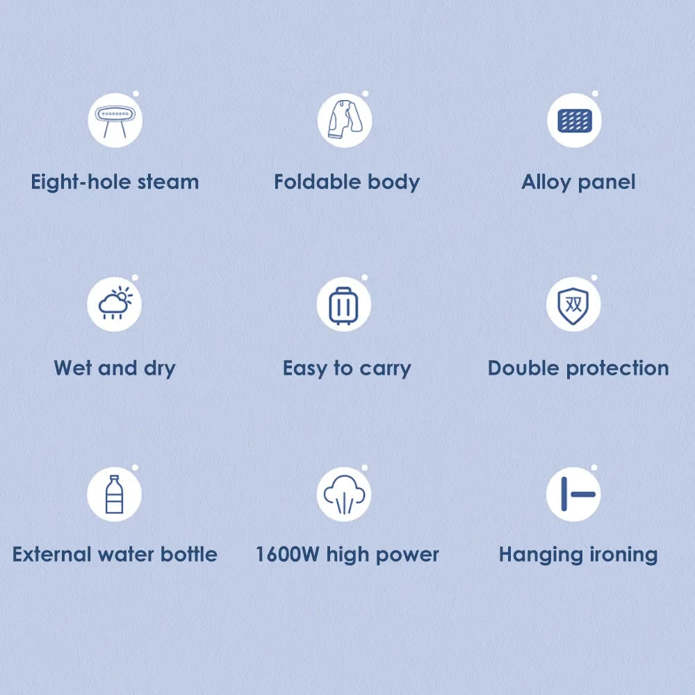 Handheld Garment Steamer for Clothes 1600W Powerful Electric Steam Iron Foldable Portable Traveling Clothes Steamer Home