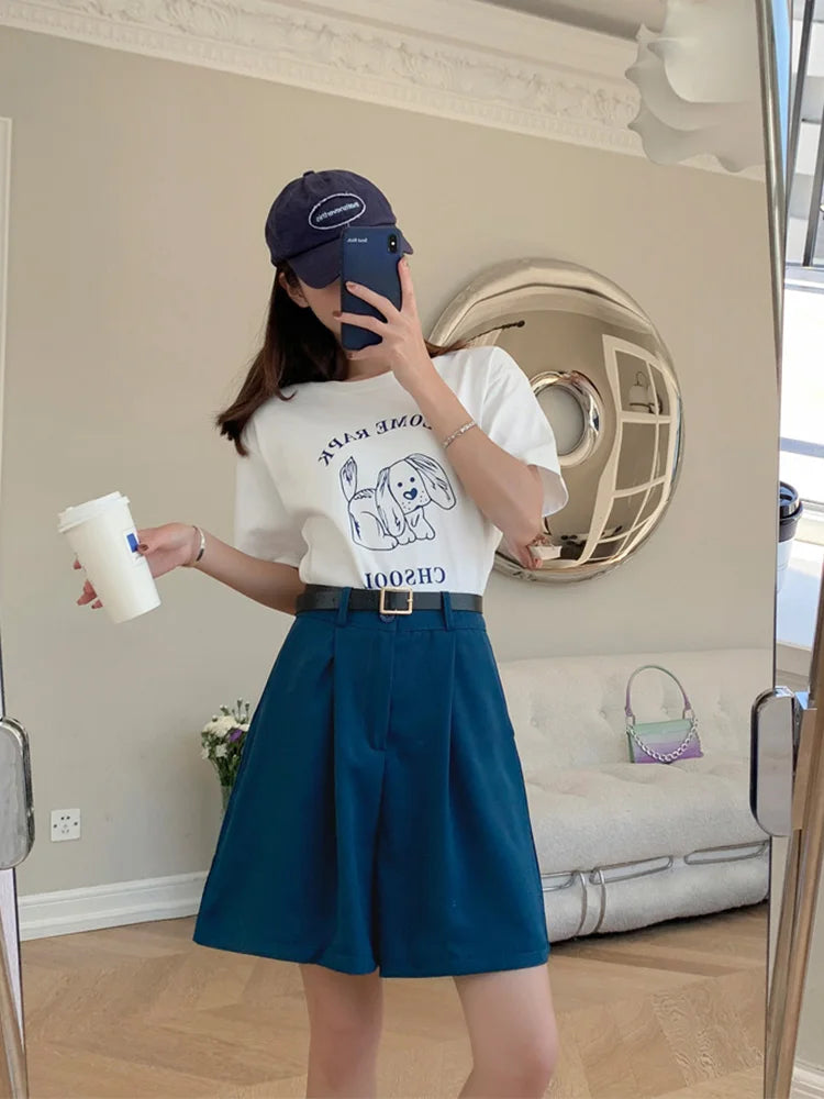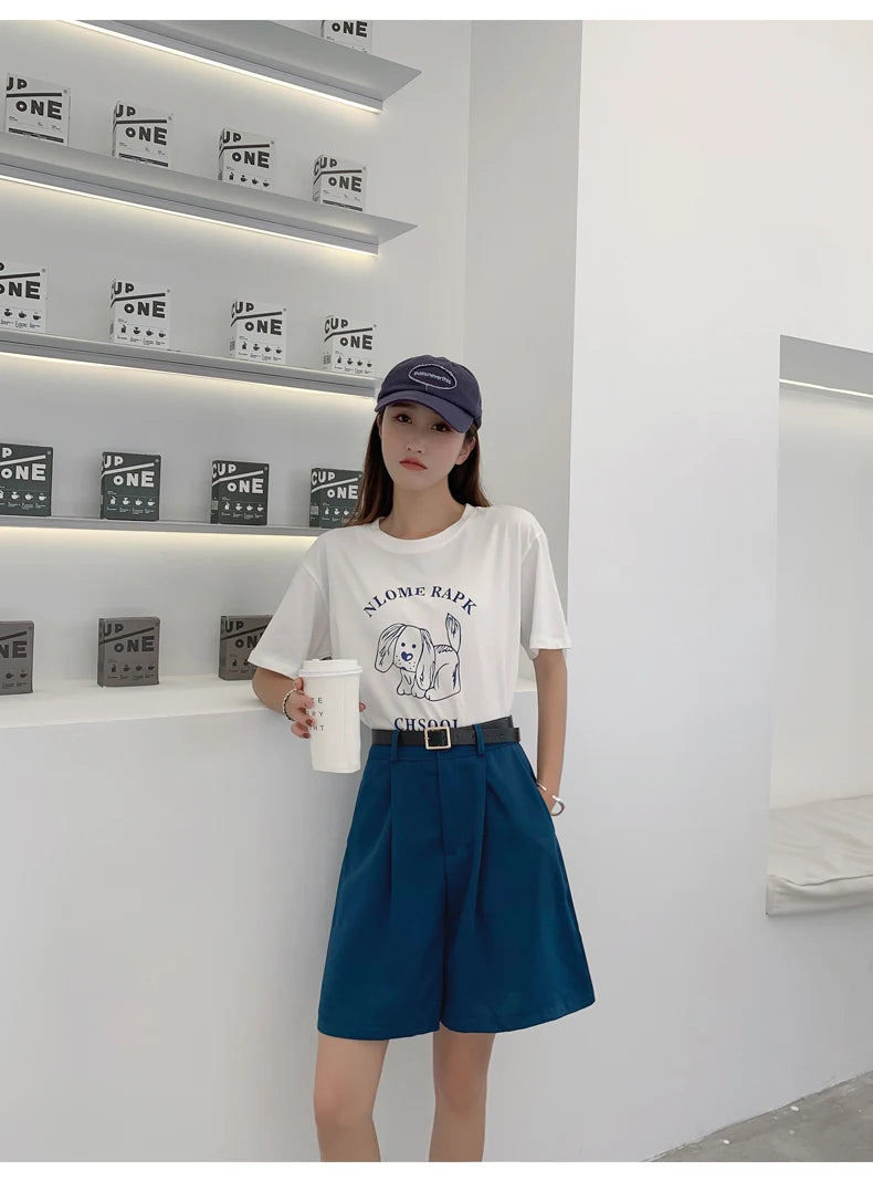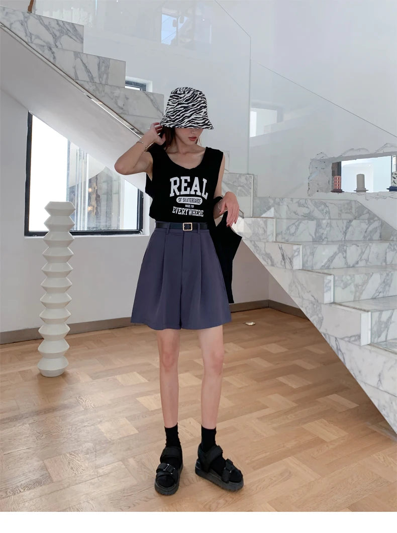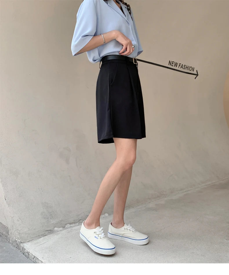 Jielur Women's Loose High Waist Suit Shorts Women Black Grey Blue Five-point Shorts Female Casual Wide-leg Shorts for Women S-XL