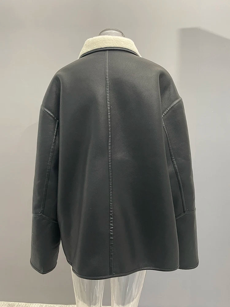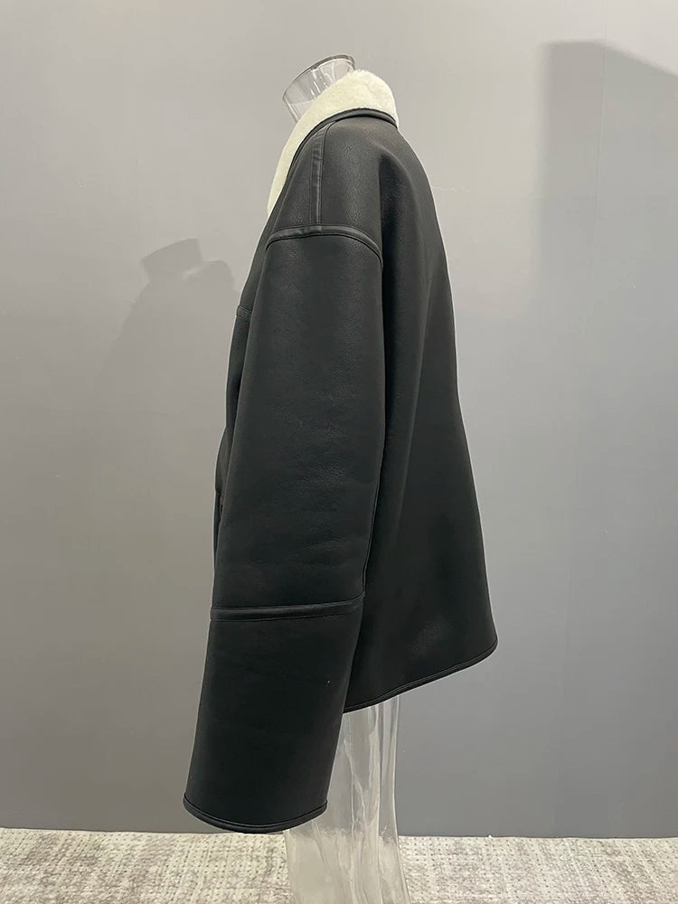 [LANMREM] Faux Fur Thick Warm Coats Lapel Single Breasted Office Lady Elegant Female Outwear Fashion 2025 Winter New 26C1095