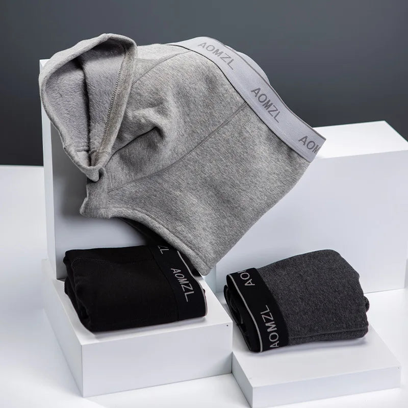 Mens Boxer Underwear Fleece-Lined High Waisted Winter Thickened Shorts U Convex Pouch Lingerie Underpants Breathable Panties