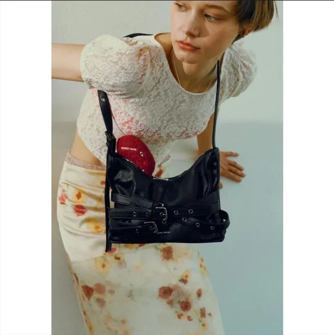 NEW Korean Star's Same Crossbody Bag Samoondoh Trendy Cool Motorcycle Bag Designer Y2K Handbags Casual Single Shoulder Bags