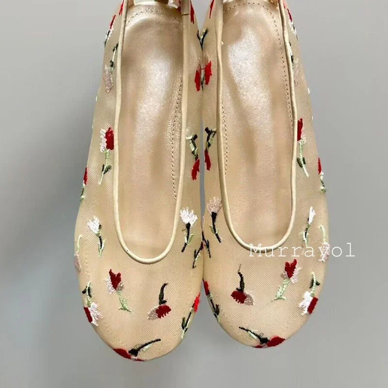 New Round Toe Mesh Breathable Mary Jane Shoes Women Solid Color Flat Shoes Summer Leisure Vacation Single Shoes Loafers