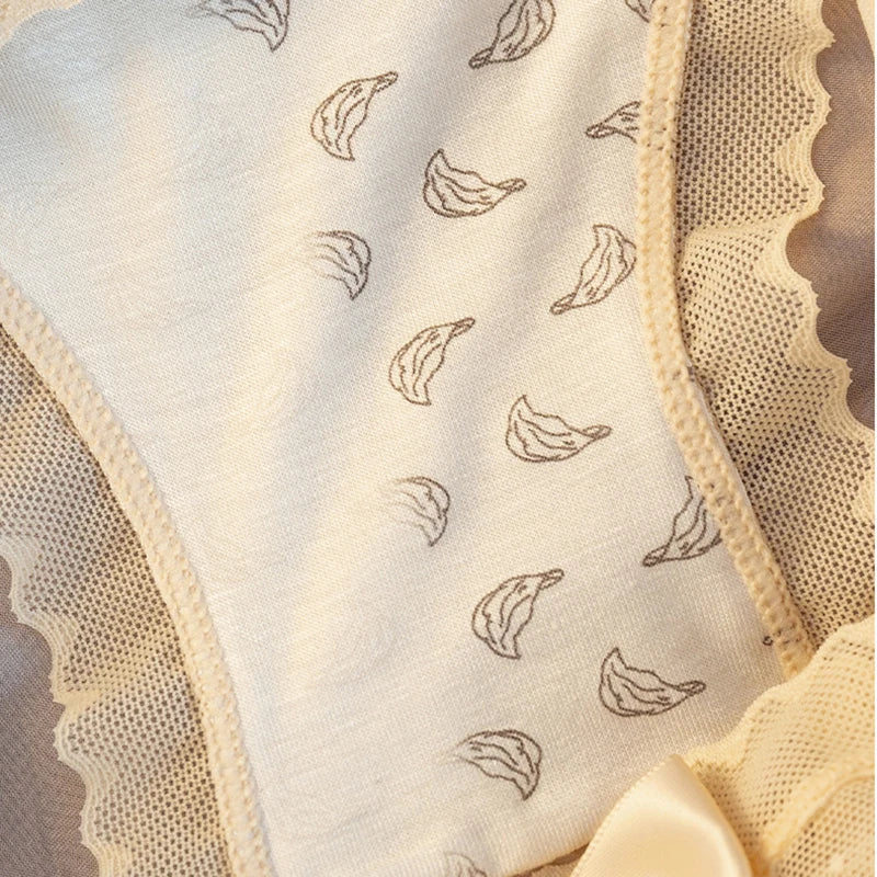 Women Sexy Lace Satin Smooth Middle Waist Panties Transparent Breathable Seamless Bow Underwear High Elasticity Soft Breifs