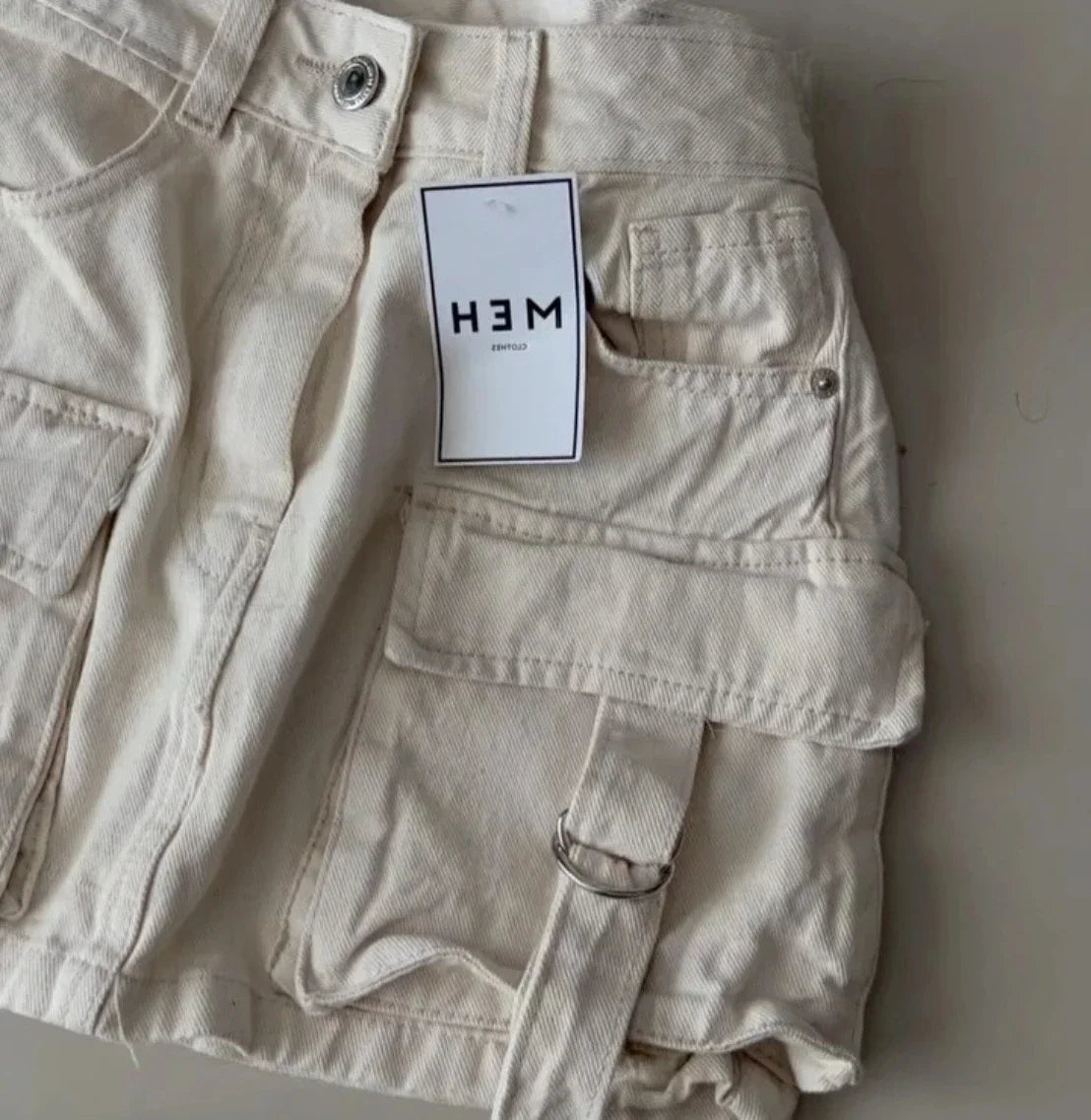 Y2K Short Skirt Fashion Gothic Cargo Baggy Denim Shorts Retro Blue Multi Pocket Denim Shorts Womens High Waist Slim Mini Skirt