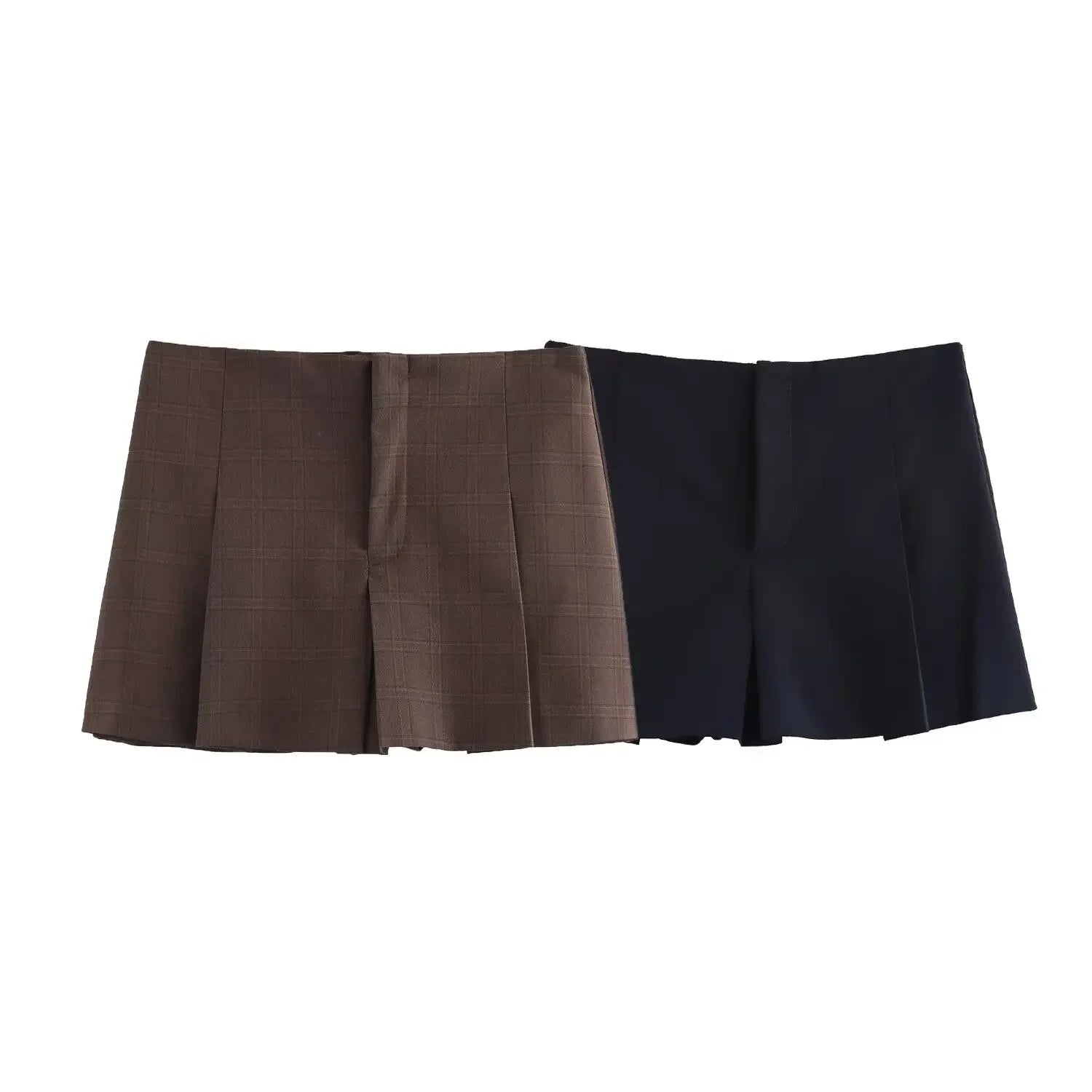ZRWomen's Fashionable Versatile High-Waisted Slimming Plaid Shorts Skirt New Arrival Spring 2025 Commute Style